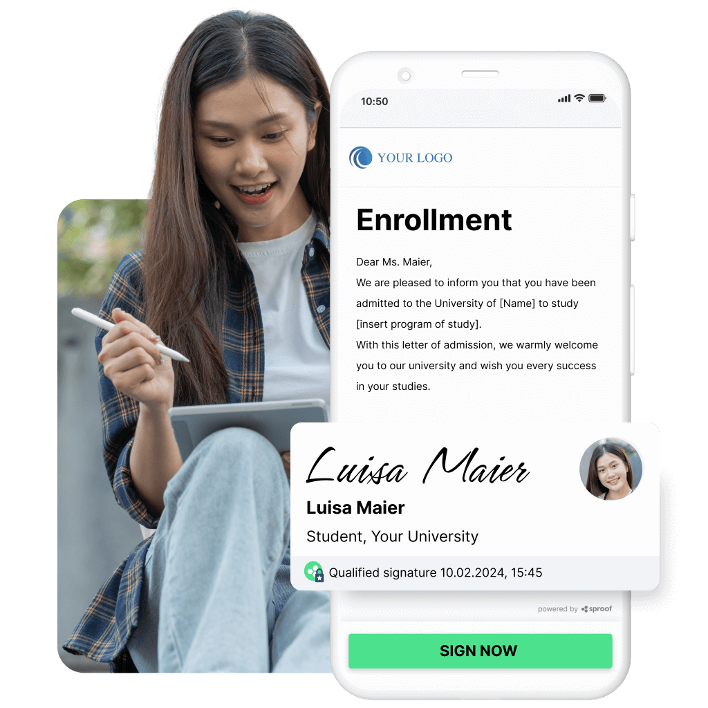 - Stroomlijn e-handtekening workflows en college onboardings. Met sproof kun je tijdrovende, bureaucratische processen in administratie, onderzoek en onderwijs digitaliseren. Ons platform maakt een snelle, wettelijke en GDPR-conforme verwerking van inschrijvingen, certificaten, contracten en meer mogelijk. Als Europese provider met ISO 27001-certificering garanderen wij gegevenssoevereiniteit en het hoogste niveau van eIDAS-naleving. Vertrouw op een oplossing die voldoet aan de hoge eisen van de onderwijssector op het gebied van beveiliging en efficiëntie.