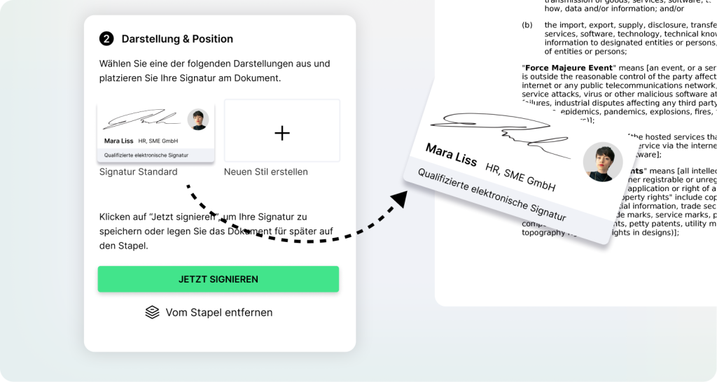 Umieść swój podpis cyfrowy w żądanym miejscu, kliknij "Podpisz teraz" i zidentyfikuj się za pomocą danych dostępowych swojego dostawcy eID. Podpisałeś swój dokument w sposób zgodny z prawem.